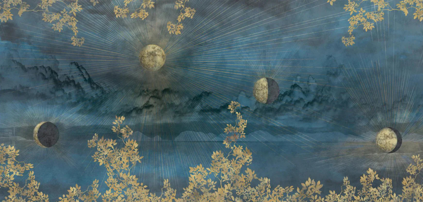 Celestial Moon Wall Mural, Moon Phases Blue Wallpaper, Large Space Custom Size Wall Covering, Non-Woven, Non-Pasted, Removable, Washable, Art