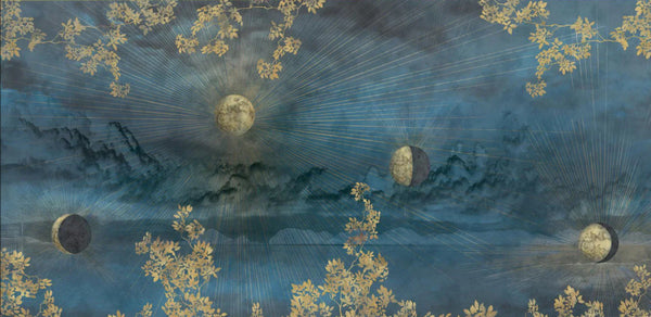 Celestial Moon Wall Mural, Moon Phases Blue Wallpaper, Large Space Custom Size Wall Covering, Non-Woven, Non-Pasted, Removable, Washable, Art