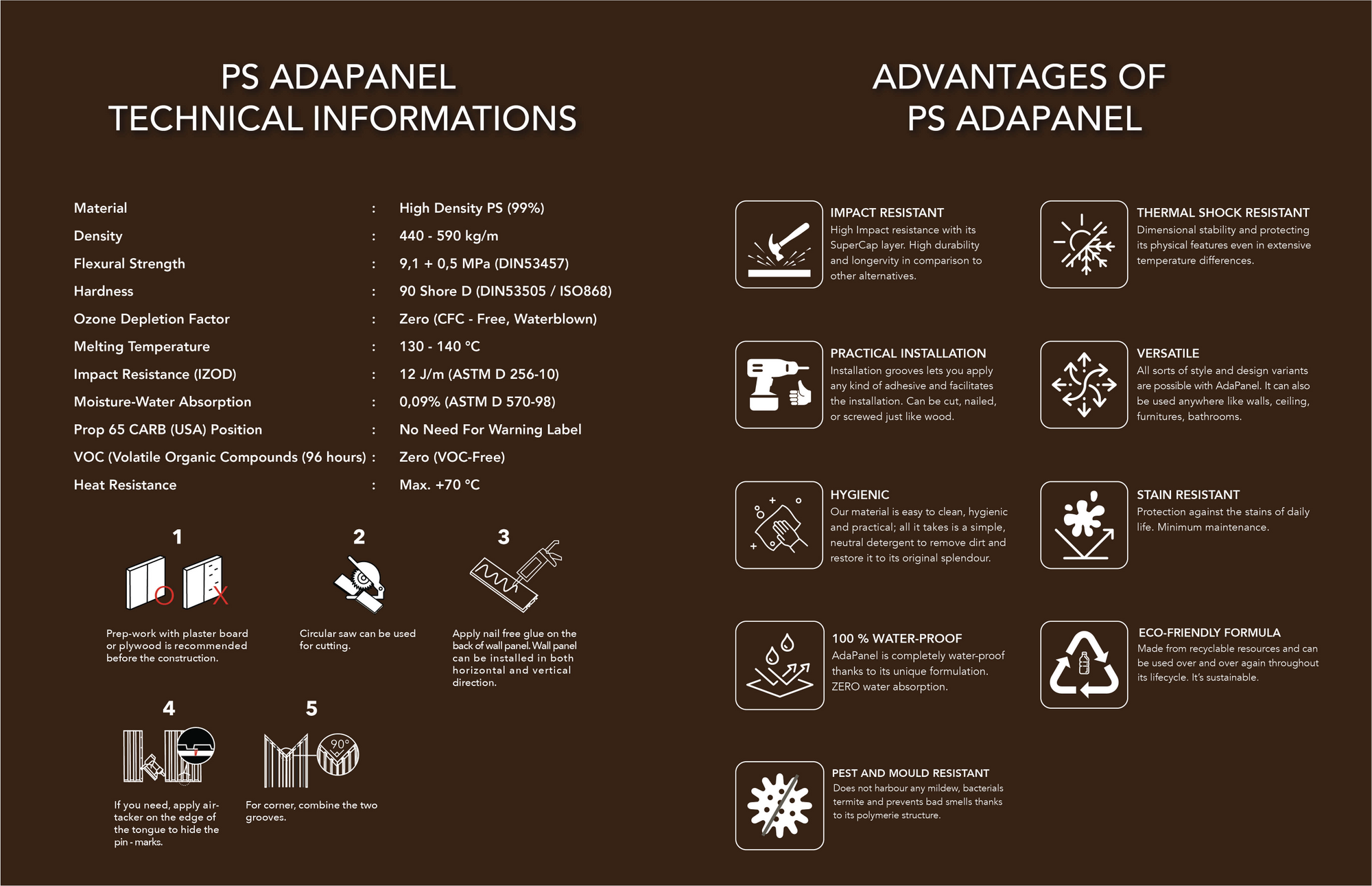 Installation is a breeze with Walloro PS wall panels, and they're armed with impressive features like waterproofing, fire resistance, corrosion resistance, and sound insulation. Plus, they're entirely free from harmful substances like formaldehyde, embodying the essence of modern home environmental consciousness.